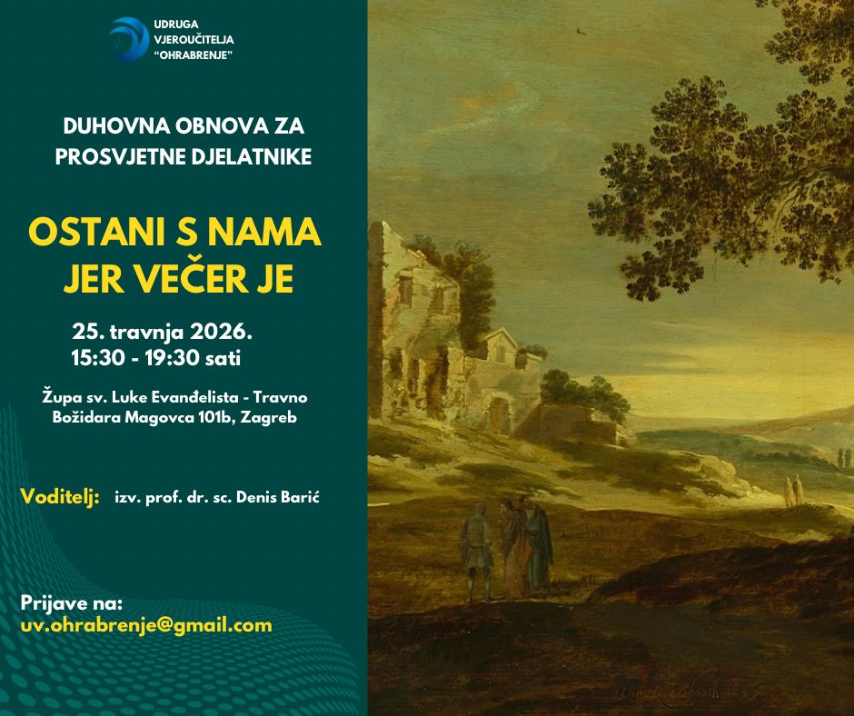 U subotu 21. 2. 2026. godine Udruga vjeroučitelja Ohrabrenje organizirala je duhovnu obnovu za srednjoškolce u Župi sv. Ivana XXIII., pape u Dubravi. Pročitaj više.